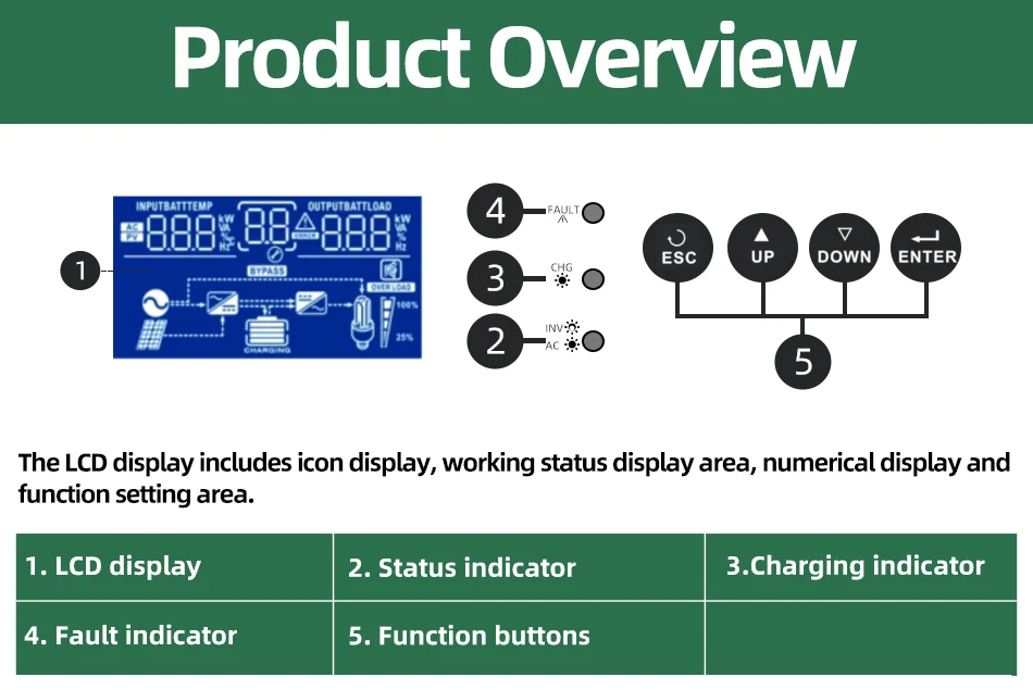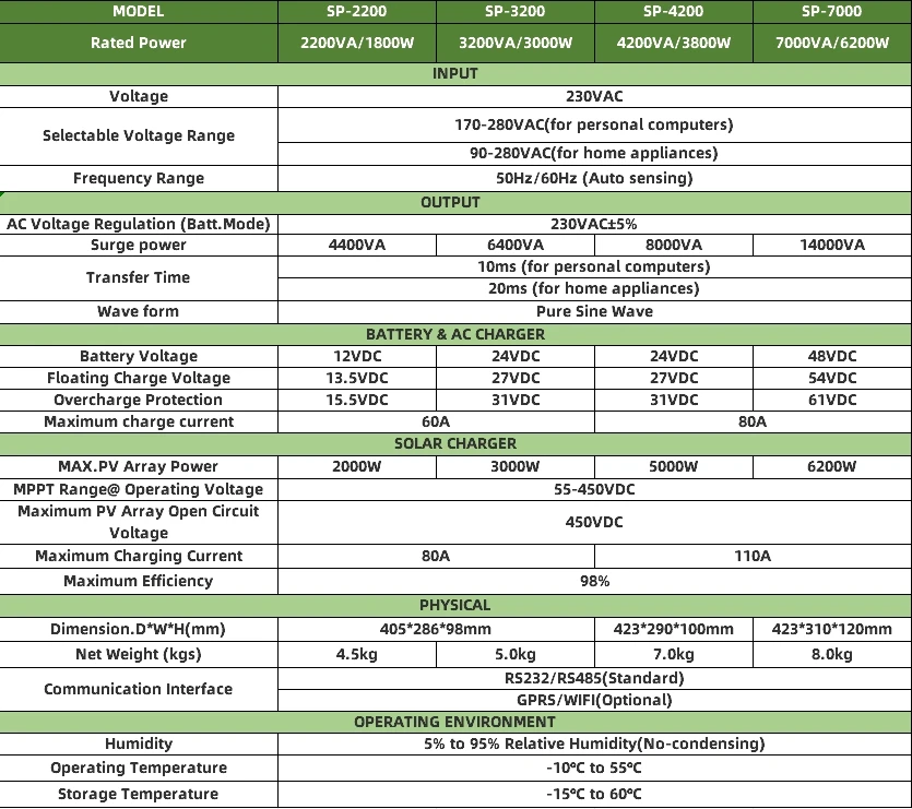 4)Configurable AC/Solar Charger priority via LCD setting