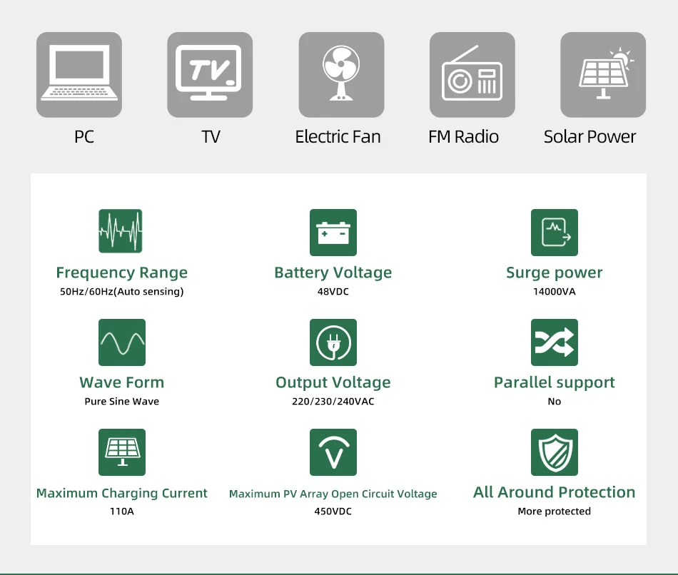 - Surge power: 14000VA