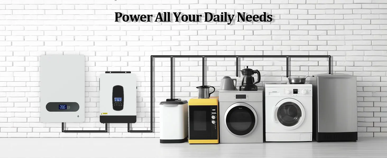 MPPT Inverter Charger Pure sine Wave 2200W for RV Camping Boat Home Emergency ect.. Can be accessed to a variety of household and office loads, including Oven, rice cooker, lamps, televisions, fans and other AC loads.
