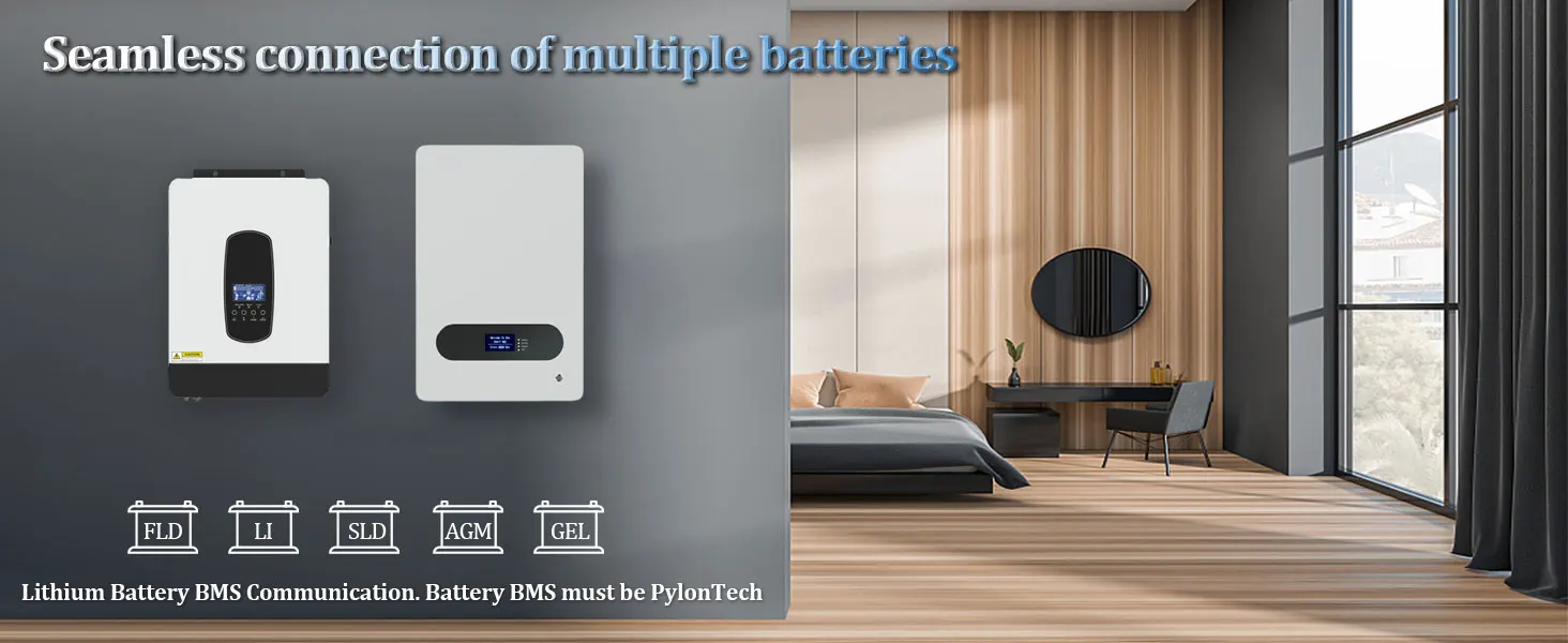 built in 80A Mppt charge controller, is a new all-in-one hybrid solar inverter charger, fit for 12V Lead-Acid (Seal, AGM,Gel, Flooded) and Lithium battery