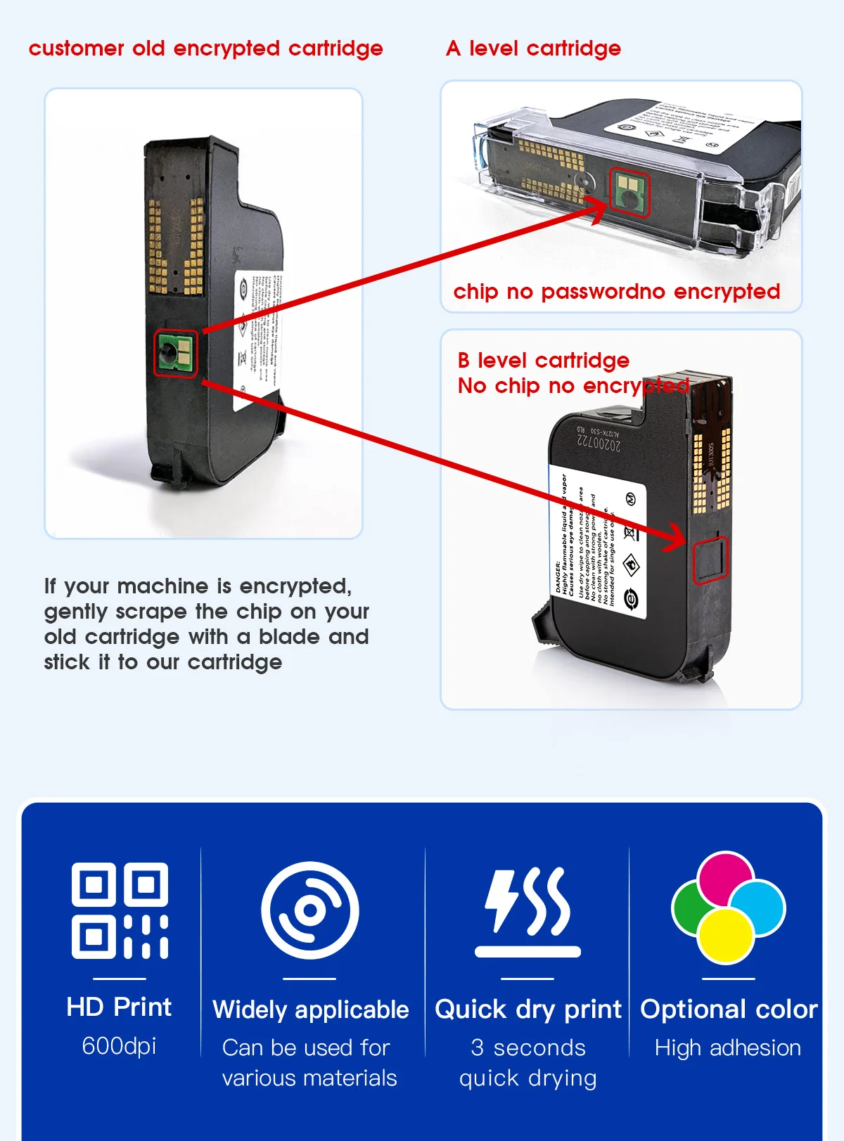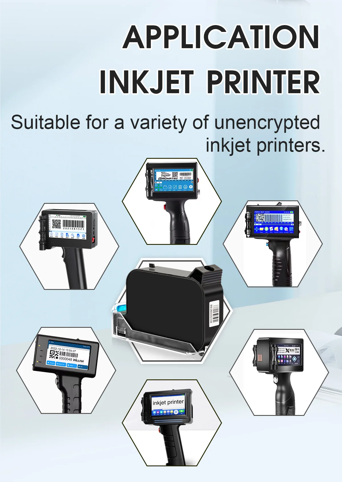 1) Suitable for unencrypted handheld inkjet printer, encrypted printer can't use directly otherwise don't bear responsibility