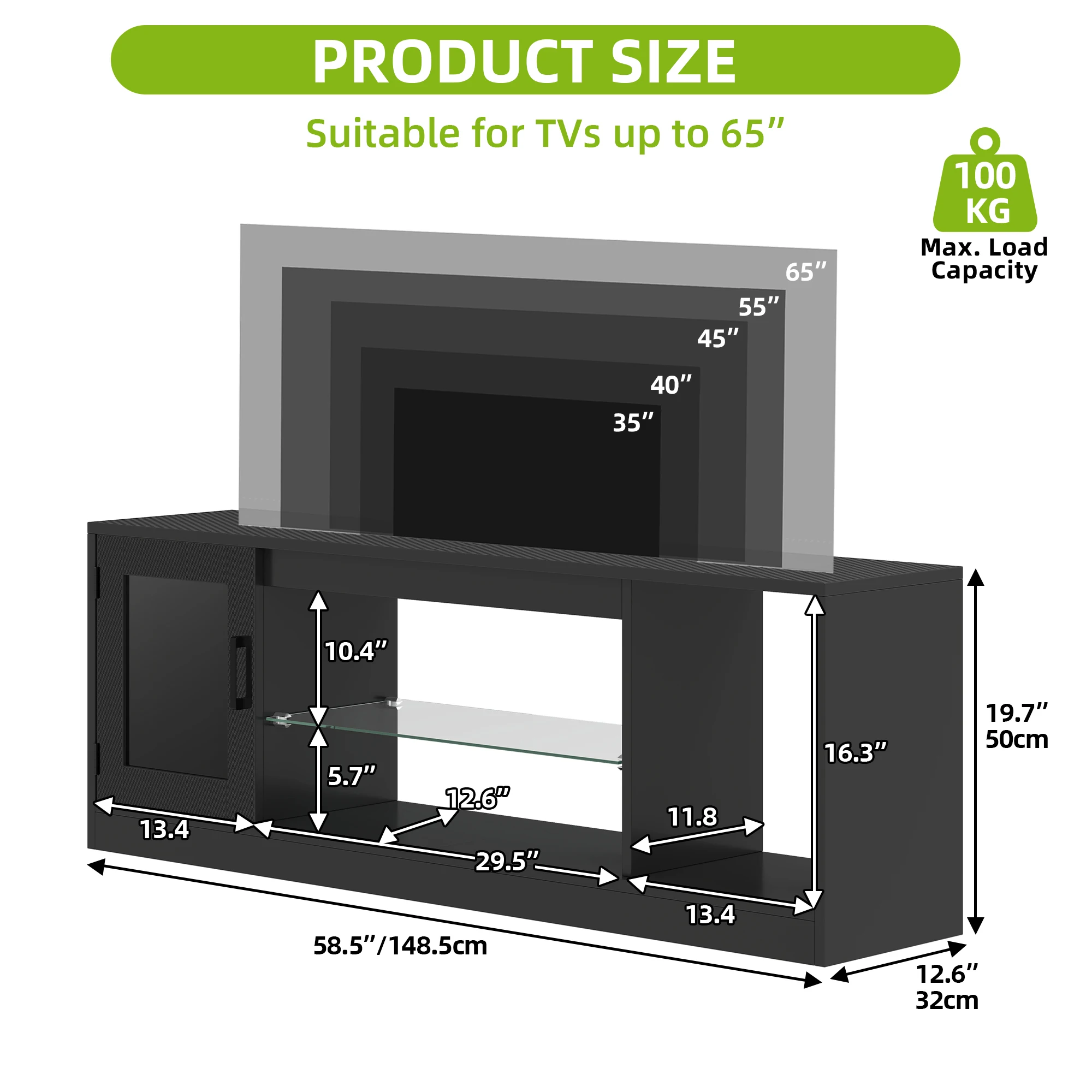 "The TV stand is a versatile and modern addition to your living room or bedroom, designed to support TVs up to 50 inches.