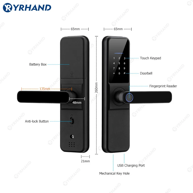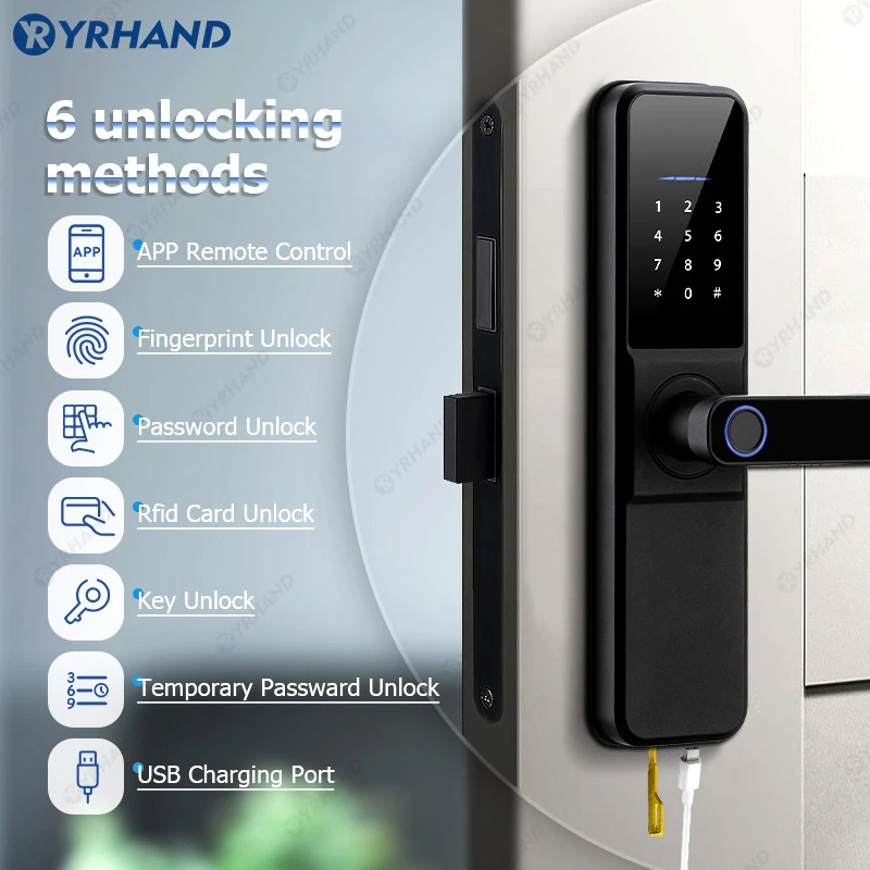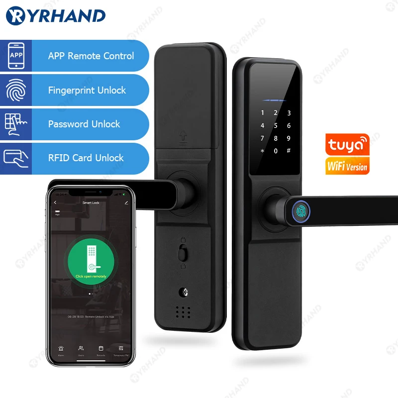 YRHAND H01 Tuya wifi App Unlock fechadura Biometric eletronica digital Waterpoof Fingerprint IC card Smart Door Lock for Home