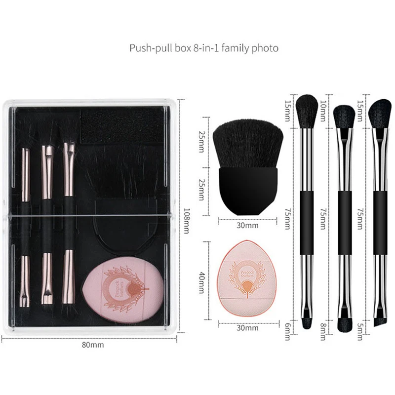 2. The brushes are made of plastic handles and artificial bristles, which are soft to the touch and apply evenly, and the powder puff is made of sponge with a smooth surface.