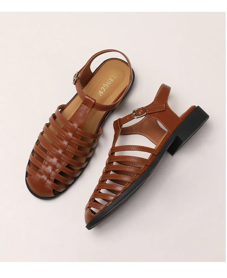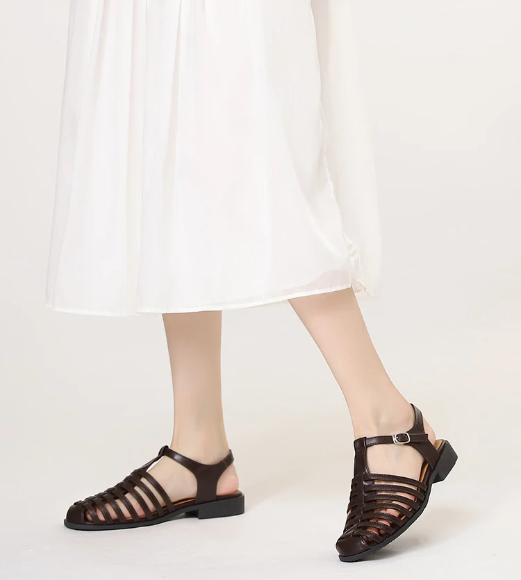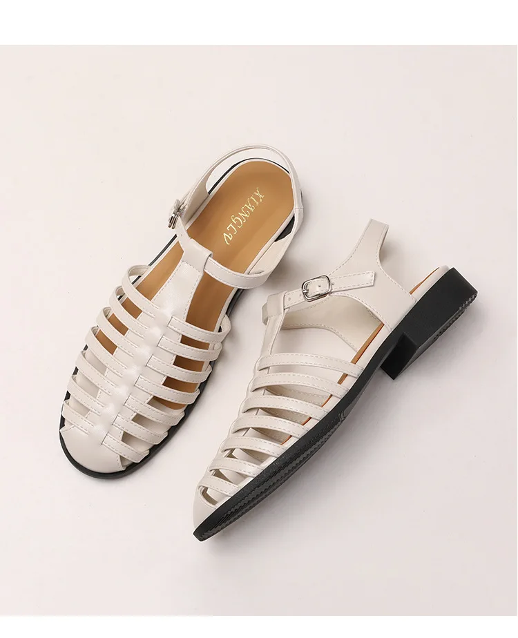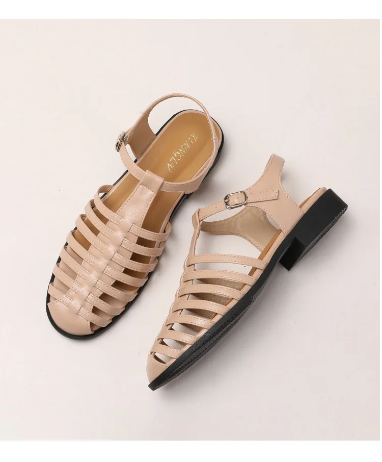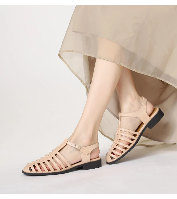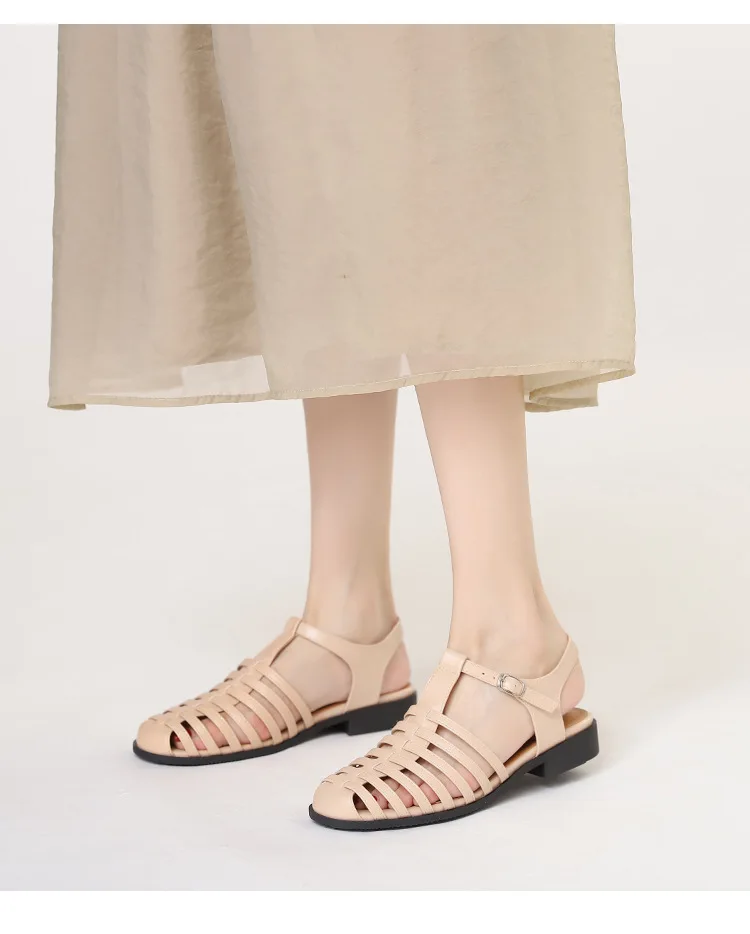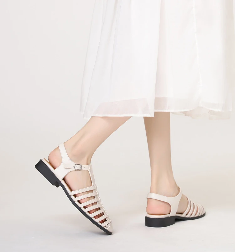 - T-strap Rome Flat Sandals Women: French Gladiator Low Heel Women Sandals