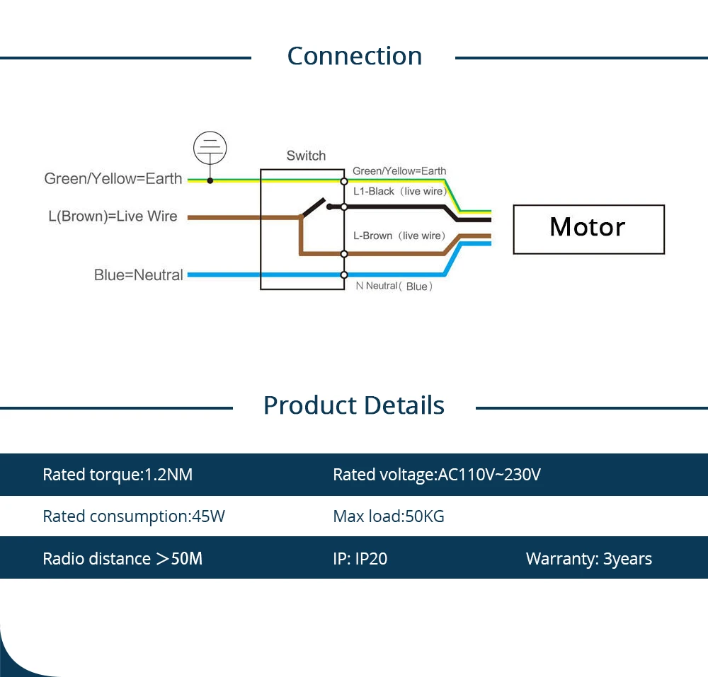 -The 5-wires motor itself is RF version, it need connect to the smart switch to work on App and voice control