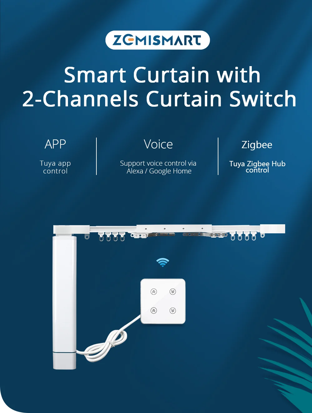 Zemismart Tuya Smart Curtains with Dual Track 2 Channels Zigbee Wall Switch Alexa Google Home Motorized Customized Curtain