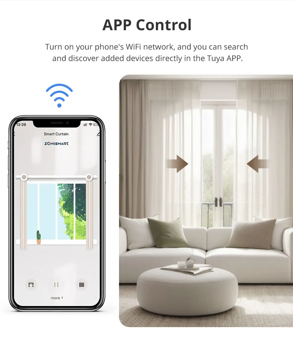 – This smart curtain can voice control via Alexa and Google home and Yandex.