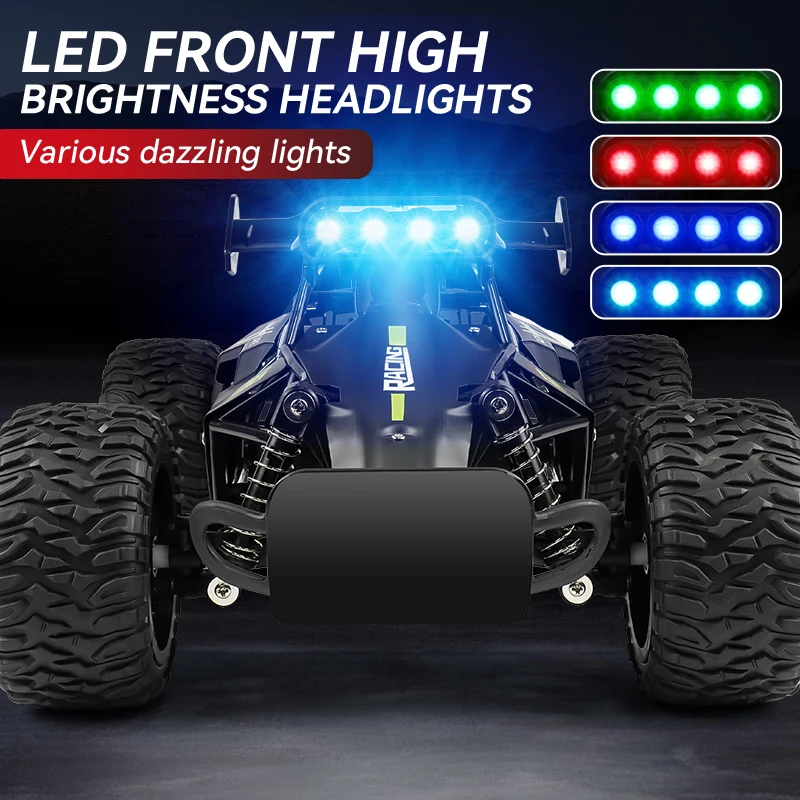 1. Adopting simulation structure design, with the sense of handling of a real car, realising full-size scale model, high-speed driving, Forward, backward, left, right, four-color light changes, proportional throttle, high and low speeds
